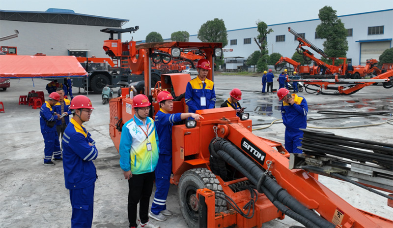培訓(xùn)以“理論結(jié)合實(shí)踐”的模式開展,針對江西鑫通礦用掘進(jìn)鉆車和礦用錨桿鉆車展開教學(xué),理論課程涵蓋臺車的保養(yǎng)和維修知識;設(shè)備實(shí)操通過結(jié)合模擬掌子面對眼、在巖石上進(jìn)行鉆孔等課程,為學(xué)員提升操作技能打下了堅(jiān)實(shí)的基礎(chǔ)。
