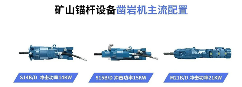本系列礦山錨桿鑿巖臺(tái)車(chē)標(biāo)配沃思德S14B/D鑿巖機(jī),可根據(jù)巖層條件及客戶需求升級(jí)至高功率S15B/D、M21B/D型號(hào),鑿巖速度達(dá)0.8-2.5m/分鐘。S14B/D鑿巖機(jī)機(jī)身僅長(zhǎng)574mm,可為推進(jìn)補(bǔ)償節(jié)省出近200mm的空間,使大臂旋轉(zhuǎn)可在更小空間內(nèi)完成,高效率完成大小巷道的錨桿支護(hù)作業(yè)。