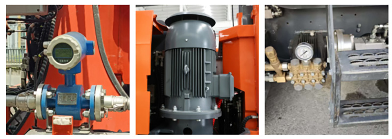 4.(選)配置豐富:采用國(guó)際知名品牌柱塞泵液壓控制系統(tǒng)、馬牌等國(guó)際或國(guó)內(nèi)知名品牌多層液壓油管、蘇格強(qiáng)等大品牌油管接頭;可選配大功率、大壓力水槍?zhuān)?3MPA)以應(yīng)對(duì)注漿工作難以清洗的水泥漿;可選配自動(dòng)潤(rùn)滑系統(tǒng),用于日常保養(yǎng)。