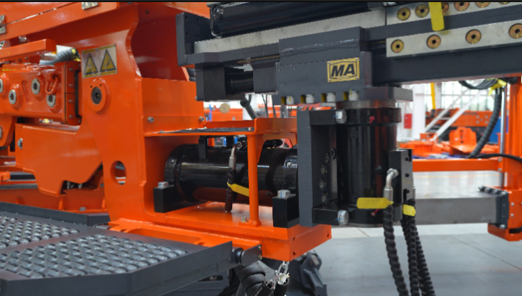 鉆臂底座1.5米行程的縱移機構,使得一次停機可完成3排以上的錨桿支護,工時效率顯著提升。